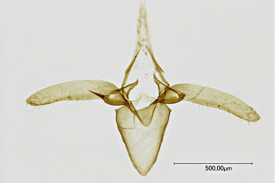 1: ♂, Deutschland, Thüringen, Weimar, 1 km W Waldstadt, 51.015°N, 11.320°E, 350 m, Tagfang, 7. Mai 2017 (leg., präp., fot. & gen.-det.: Hartmuth Strutzberg)Forum