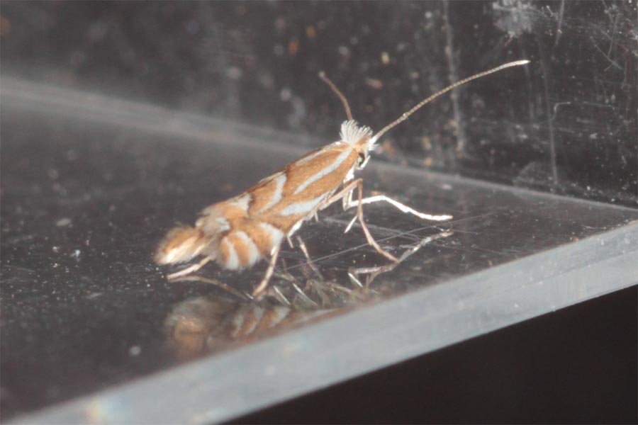 1-3: Falter und Exuvie an Blattunterseite, Österreich, Niederösterreich, Dreistetten an der Hohen Wand, Viehweiden, Mischwald, 400 m, e.l. leg. 22. Oktober 2005, Minen an Carpinus betulus (Fotos am 13. Februar 2006: Peter Buchner), cult. & det. Peter Buchner