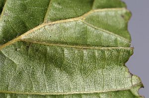 5: Minen von Ph. esperella (die beiden Blattumschläge) und Ph. tenerella (linke Seite des linken Blatts) an Hainbuche (Carpinus betulus): Schweiz, Neuchâtel, Cressier, 430 m, nordgerichteter Waldrand, 7. Oktober 2006 (Freilandfoto: Rudolf Bryner), det. Rudolf BrynerForum