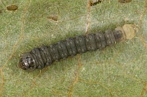 Raupe: Die Raupe von Ph. froelichiella ist schwärzlich und die von Ph. klemannella gelbgrün. (Autoren: Peter Buchner und Rudolf Bryner)