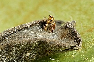 1: Deutschland, Schleswig-Holstein, Sylt, Lister Land, Minen am 1. Oktober 2010 an Kriechweide (Salix repens), e.l. 19. März 2011 (leg., cult., det. & Studiofoto: Uwe Büchner)