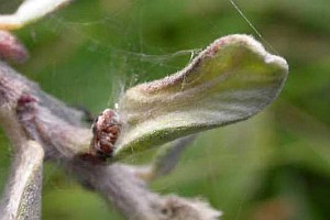 Die Minen sind unscheinbar und kaum von den anderen Blättern zu unterscheiden. Sie verursachen eine röllchenförmige Krümmung des Blattes nach unten.