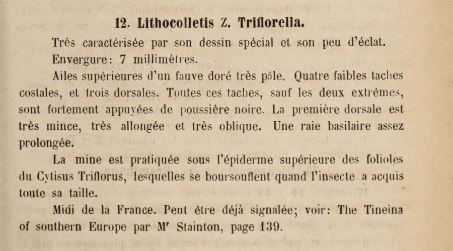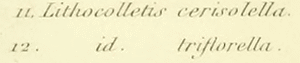 - Lithocolletis triflorella de Peyerimhoff, 1872 [Originalkombination]