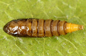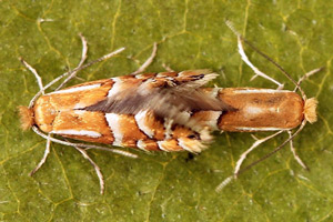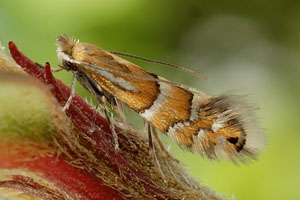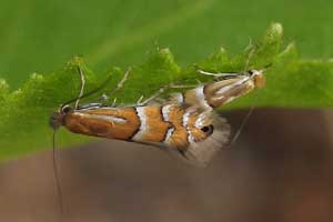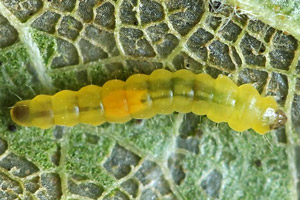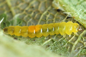 Fraßaktive Raupen von Phyllonorycter ulmifoliella weisen einen typischen, orangefarbenen Fleck auf dem 6. Abdominalsegment auf, der Phyllonorycter anderidae-Raupen fehlt.
