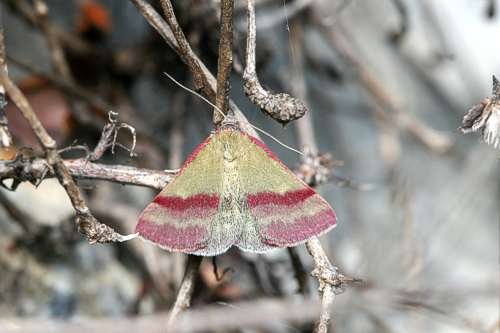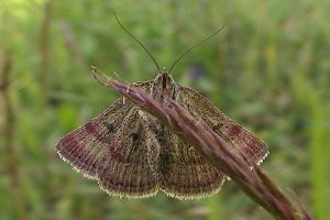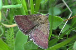 1: Raupen sind an der Nahrungspflanze fast unsichtbar und lassen sich bei Störung fallen, Deutschland, Thüringen, Umg. Maua bei Jena, Spitzenberg, ♀ am 10. Mai 2012, zur Eiablage gebracht, Zucht ex ovo, am Fundort unter natürlichen Bedingungen beobachtet (leg., cult., det. & Foto am 30. Mai 2012: Heidrun Melzer)