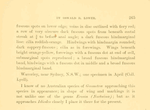 • Original description: Lower, O. B. (1897): New Australian Lepidoptera. — The Proceedings of the Linnean Society of New South Wales 22 (2): 263-274. Sydney (F. Cunninghame & Co.).