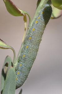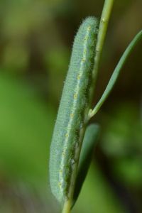 Die Raupe lebt an den Blättern der Felsen-Steinkresse (Aethionema saxatile), an die sie farblich hervorragend angepaßt ist. Gebietsweise auch an anderen Steinkresse-Arten und der Färber-Waid (Isatis tinctoria).
