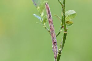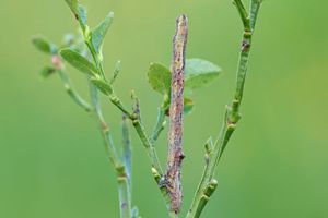 5: Puppenkokon, Deutschland, Baden-Württemberg, Zollernalbkreis Winterlingen, lichter Mischwald mit Sturmwurffläche, 780 m, an an Roter Heckenkirsche (Lonicera xylosteum), Raupenfund 21. August 2024, Tagfund, Foto 1. September (Zuchtfoto: Andreas Röcker), Falterfoto im ForumForum