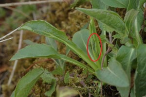 Bei der Nennung von Senecio nemorensis beruft sich Gielis (1996: 41) auf Mitterberger (1912); dort steht (S. 122): "Senecio nemorensis (Hain-Kreuzkr.): Platyptilia nemoralis Z., Juni, Anfang Juli im Mark der oberen Stengel; knotige Anschwellungen verraten den Aufenthalt der Raupe. — ?Platyptilia zetterstedtii Z.". D.h., Mitterberger hatte in seiner Literaturzusammenstellung keine konkreten Daten zu P. zetterstedtii (jetzt P. calodactyla gefunden!
