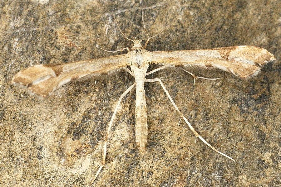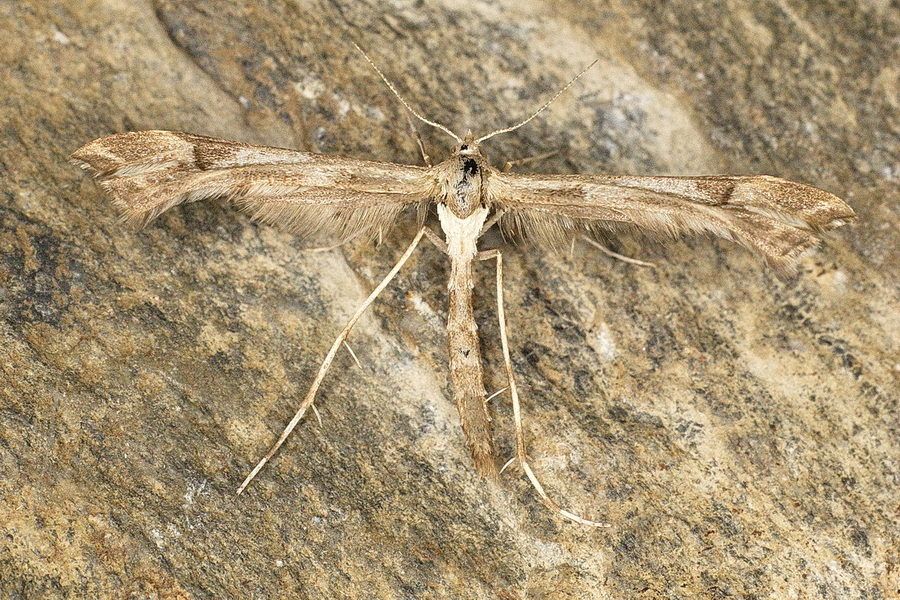 2: ♀, Schweiz, Bern, St-Imier, 1095 m, 9. Juni 2000, Tagfang (leg., det. und fot.: Rudolf Bryner)Forum 1: Österreich, Steiermark, Fischbacher Alpen, St. Kathrein am Offenegg, Sommeralm, 1400 m, am Licht, August 2021 (det., präp. & Foto: Horst Pichler)Forum Platyptilia gonodactyla und Platyptilia nemoralis können an der schwarzen Beschuppung der letzten Hinterflügel-Feder unterschieden werden. Bei P. gonodactyla ist es ein kurzer Abschnitt ca. in der Mitte dieser 'Feder'. Bei P. nemoralis ist es eine Beschuppung, die in der Mitte breit beginnt und nach aussen sich fortsetzt und schmaler wird [Andreas Kopp im Forum, leicht abgewandelt].