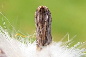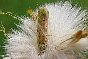 Hofmann (1896: 67) benennt eine weitere Nahrungspflanze und liefert Details zur Lebensweise: "Die Raupe lebt nach der Ueberwinterung im Frühjahr in den Blüthenstengeln von Tussilago farfara und Petasites dicht über dem Boden und verräth sich durch die verkümmernden Pflanzen und durch ausgestossenen schwarzen Koth. Erwachsen findet sich die Raupe in dem zusammengesponnenen Pappus, woselbst auch zum Theil die Verpuppung erfolgt; andere verpuppen sich an der Blattunterseite in einer durch ein leichtes weisses Gespinnst bedeckten Falte des Blattes. Die Raupe findet sich in 2 Generationen, von März bis Anfang Mai und wieder im Juli und August." Die Petasites-Art wird leider nicht benannt, es ist aber davon auszugehen, dass damit Petasites hybridus gemeint war.