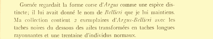 - Lycaena argus bellieri Oberthür, 1910 [Originalkombination]