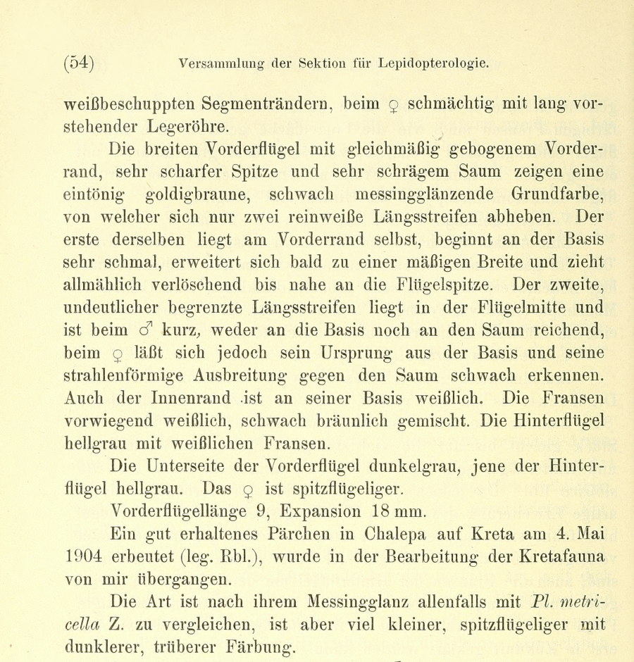 - Erstbeschreibung: Rebel, H. [Vors.] (1917): Versammlung am 9. Februar 1917. — Verhandlungen der kaiserlich-königlichen zoologisch-botanischen Gesellschaft in Wien 67 (1-2): (45)-(55).