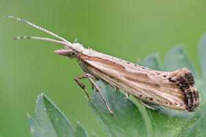 Nach Burmann (1985): "In ganz Europa, Kleinasien und N-Amerika weit verbreitet und stellenweise als Gartenschädling stark in Erscheinung tretend. Die Raupe lebt in Blattwinkeln. Bei Massenvorkommen sind die Pflanzen vollkommen versponnen, sodaß kaum Blüten zur Entwicklung kommen können. Bevorzugte Fraßpflanzen sind Hesperis matronalis L. und Cheiranthus spec. Es kommen wohl auch noch andere Cruciferen in Betracht."