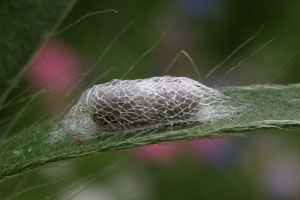 Kaltenbach (1856: 191) besprach die Art unter Alliaria petiolata (als "Alliaria officinalis"): "Auch die Raupen einer Motte, Tinea (Plutella) xylostella W. W. = Plut. cruciferarum Zell., lebt nach Rösel und Kleemann im Juni und August gesellschaftlich in einem leichten Gespinnst unter den Blättern des Läuchels. Sie ist 16-füssig, verwandelt sich an der Nahrungspflanze in einem dichten, kahnförmigen Gewebe und entwickelt sich im Juli, die 2. Generation im nächsten Mai zur Motte."