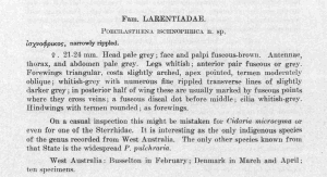 - Original description: Turner, A. J. (1941): New species of Lepidoptera from the Barnard Collection. — Memoirs of the Queensland Museum 12 (1): 40-52.