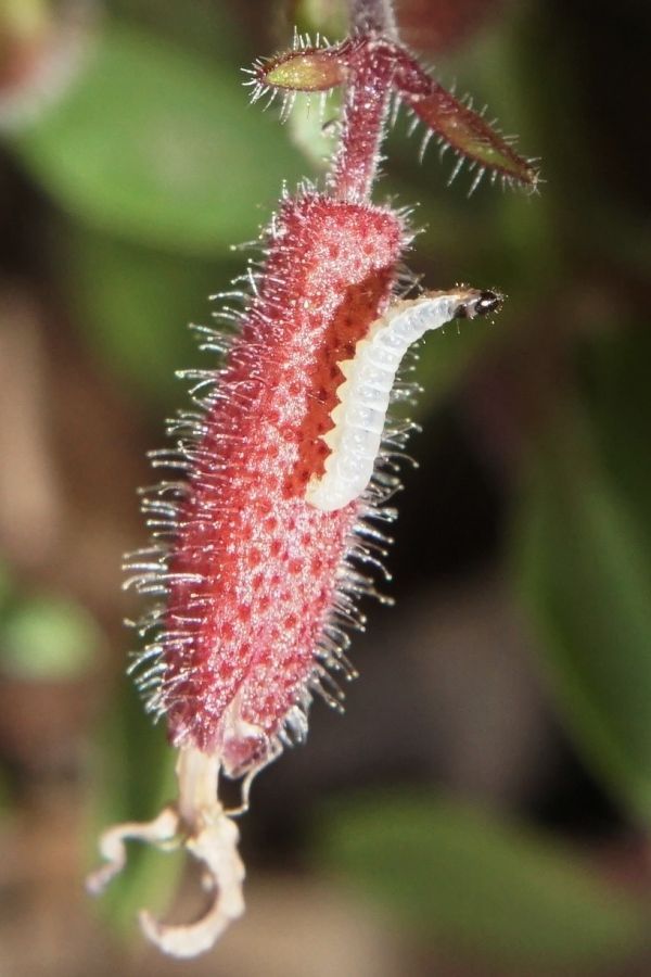 Dabei übersahen sie aber, dass Staudinger (1879: 310-311) schon in seiner Erstbeschreibung seiner Pogochaetia solitaria etwas zur Raupe geschrieben hatte, da er seine 4 Falter ja aus den gefundenen Raupen gezüchtet hatte: "Pogochaetia Solitaria Stgr. Ende Juni oder Anfang Juli fand ich in den Blüthen und Samen einer grossen schönen sehr klebrigen Lychnis (?), die am Wege nach dem Caraman oben, etwas unterhalb des Weidenbrunnens stand, und welche Pflanze ich nirgends anderswo finden konnte, mehrere kleine Räupchen, welche mir Anfangs August diese eigenthümliche Art in vier Exemplaren (zwei Paaren) lieferten." Welche "grosse schöne sehr klebrige Lychnis (?)" hatte Staudinger vor sich ? Sicher war das nicht Saponaria ocymoides ! Ich denke da direkt an die Pechnelke (Viscaria vulgaris [= Lychnis viscaria], jedenfalls viel eher als an die Klebrige Lichtnelke (Silene viscosa).