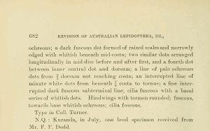 - Original description: Turner, A. J. (1907): Revision of Australian Lepidoptera, III. — The Proceedings of the Linnean Society of New South Wales 31 (4): 678-710. Sydney (F. Cunninghame & Co.).