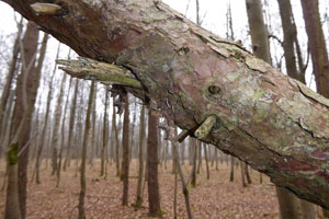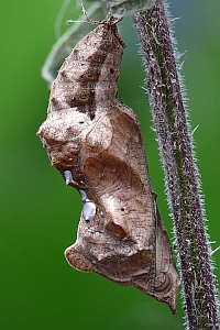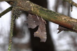Der Falter überwintert frei im Wald. Meist unter waagerecht hängenden dürren Ästen.