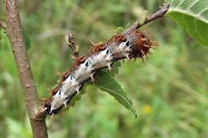 Zu ergänzen ist hier ein [Raupenfund von Ludger Wirooks am 14. Juli 2023] an Salix alba, der die Meldung an Salix x rubens noch plausibler macht: "letzten Freitag wunderte ich mich sehr als ich auf dem Golfplatz in Düsseldorf-Hubbelrath eine C-Falter-Raupe an einer als Kopfweide gepflegten Silberweide fand."