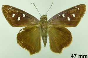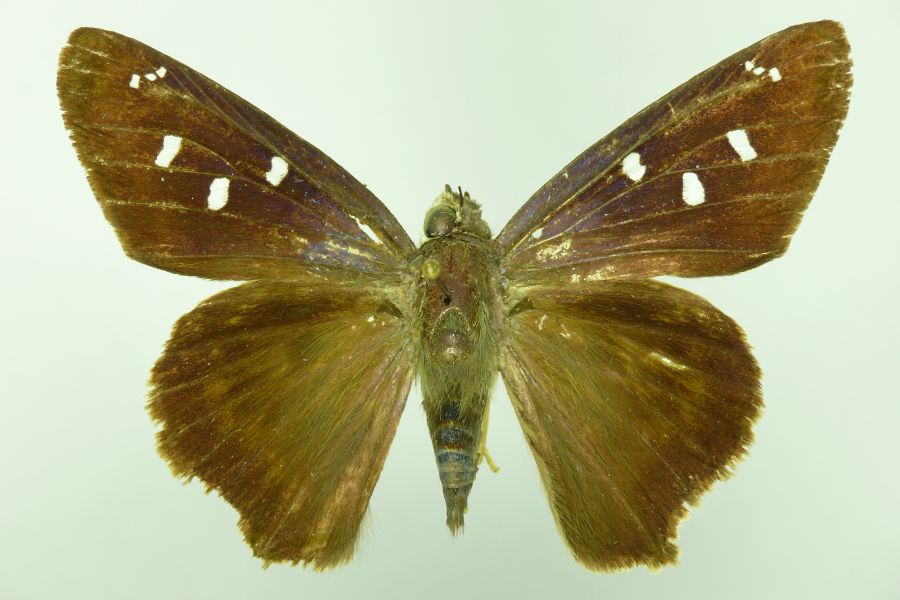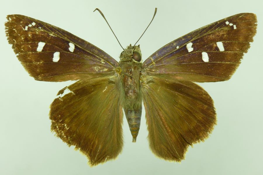 1-3: Holotypus ♂ von Polygonus leo ishmael Evans, 1952, Daten siehe Etiketten (fot.: Nick V. Grishin, Fotos bearbeitet: Michel Kettner), © Images copyright Trustees Natural History Museum, used with permission.
