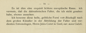- Erstbeschreibung: Schawerda, K. (1921): Hadena Bischoffi, H.-Schäff. var. nova Culoti Schaw. (Noct.). — Mitteilungen der Münchner Entomologischen Gesellschaft 11 (1-5): 71-74.