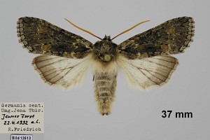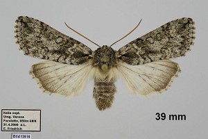 1: ♂, Österreich, Steiermark, Graz, Mariatrost, wärmebegünstigte, trockene Steinbruchumgebung, am Licht, 14. April 2018 (präp. & Foto: Horst Pichler), Falter det. Friedmar Graf & Wilfried SchäferForum