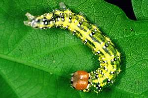 4-9: Gespinst und Puppe, Daten siehe Raupenbild 5 (Studiofotos am 12. Juni 2008: Allan Liosi)Forum