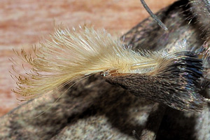 Herminia crinalis: „die Haarige; wegen des starken Haarbüschel auf den Vorderbeinen des ♂.“