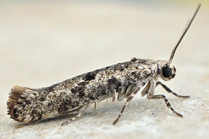 [microvlinders.nl (abgefragt 26. Januar 2019)] zeigt einen Falter vom 12. März 2014 mit Daten: "leg/foto: M. van den Enden, det. T. Muus, Sleen, Prov. Drenthe, 12.iii.2014". Kommentiert wird: "Deze soort wordt met regelmaat in kassen aangetroffen als er aan de hand van buitenlands materiaal rupsen of andere stadia worden geïmporteerd."