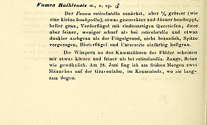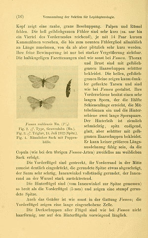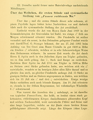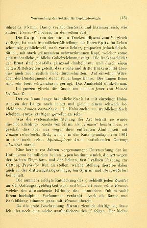 - Rebel, H. (1913): Über das Weibchen, die ersten Stände und systematische Stellung von „Fumea raublensis Mn.“. In: Rebel, H. [Vors.] (1913): Bericht der Sektion für Lepidopterologie. Versammlung am 6. Dezember 1912. — Verhandlungen der kaiserlich-königlichen zoologisch-botanischen Gesellschaft in Wien 63: 12-24.