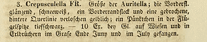 Dies dürfte aber sehr wahrscheinlich falsch sein. Johansson et al. (1990) halten Minzen (Mentha spp.) für den wahrscheinlicheren Kandidaten als Raupennährpflanze. Durch den Nachweis, dass die nahe verwandte O. spatulella Wolfstrapp (Lycopus europaeus) als Raupennahrung nutzt, wird das sehr plausibel. Schon Warren (1888) hatte für England zur Wasserminze (Mentha aquatica = M. palustris) formuliert: "where crepusculella flies commonly in Wicken Fen, Mentha palustris is abundant." Bei Regier et al. (2015) ist dann endlich zu lesen: "Pseudopostega crepusculella Zeller likewise tunnels or mines in stems of Mentha L. (mines observed in 2013, E. van Nieukerken, personal communication)".