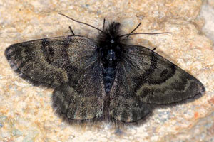 1: Die sehr ähnliche, simultan fliegende Psodos alticolaria (links) lässt sich von P. wehrlii (rechts) gut anhand der Zeichnung der Flügelunterseite unterscheiden: Italien, Südtirol, Nationalpark Stilfserjoch, Ortlergruppe, Hintere Schöntaufspitze, 3.275 m, 23. Juli 2021 (leg. M. Falkenberg, M. Sauter und R. Trusch; Studiofoto: Robert Trusch, det. & conf. Norbert Pöll und Robert Trusch)