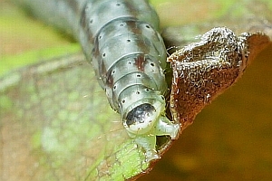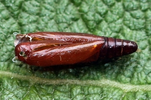 Schütze (1931) schreibt: "Wicklerartig in einem eng eingerollten Blattrand von Quercus, Salix caprea, Crataegus. Verwandlung an der Erde (Sorhagen)." Wie sicher diese Fremdangaben sind, bleibt unklar.