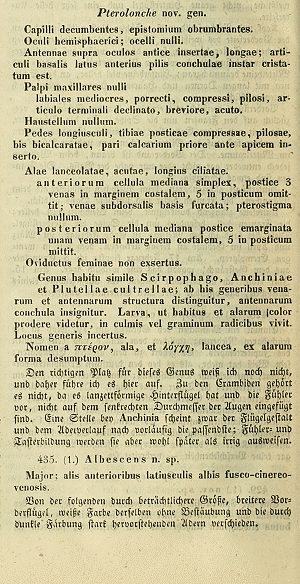 - Amsel, G. (1955): Über mediterrane Microlepidopteren und einige transcaspische Arten. — Bulletin de l'Institut royal des Sciences naturelles de Belgique 31 (83): 1-64 (u. a. mit Gen.-Abb. von Pterolonche vallettae n. sp., P. albescens, P. inspersa, P. pulverulenta).