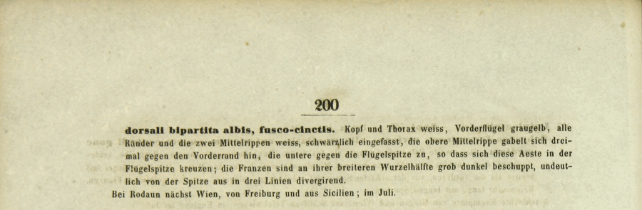 Wir folgen den detaillierten Datierungs-Angaben von Heppner (1982). Obwohl die Tafel 73 bereits 1853 erschienen ist, darf sie nach den Bestimmungen des ICZN nicht als Erstbeschreibung gelten, denn die Nomenklatur auf dieser Tafel ist nicht binominal.