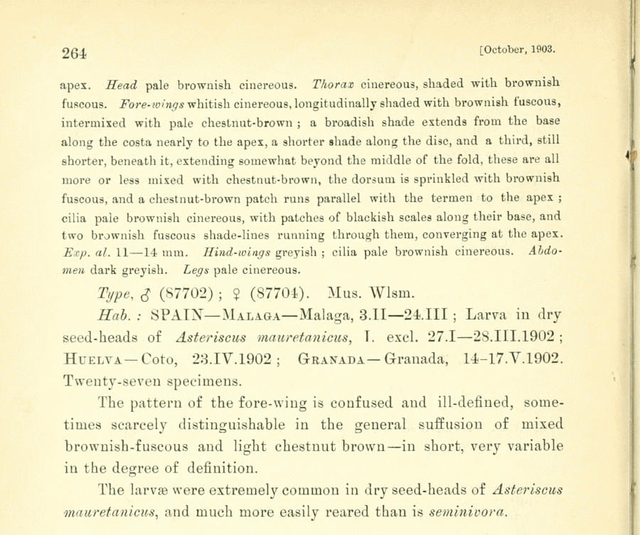 - Erstbeschreibung: Walsingham (1903): Spanish and Moorish Micro-Lepidoptera. — The Entomologist's Monthly Magazine 39: 179-187, 209-214, 262-268, 292-293.