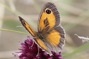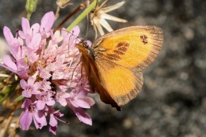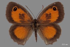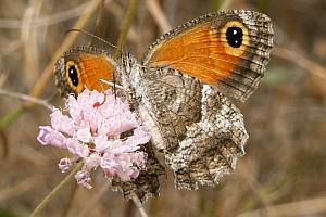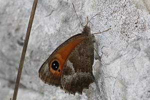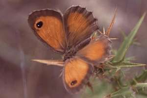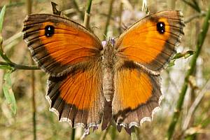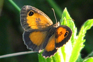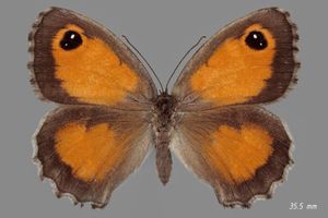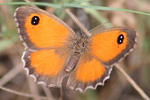 Zur Unterscheidung der männlichen Falter von Pyronia cecilia und Pyronia tithonus: bei P. cecilia ist der Duftschuppenfleck durchbrochen, bei P. thitonus nicht [Uwe Geulen].