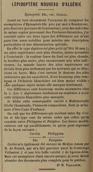 - Epinephele ida var. cecilia Vallantin, 1894 [Originalkombination]