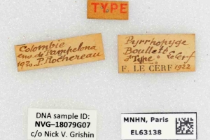 7-9: Holotypus ♂, Daten siehe Etiketten (fot.: Nick V. Grishin, Fotos bearbeitet: Michel Kettner), coll. Muséum national d'histoire naturelle. Paris.