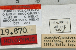 1-3: Holotypus ♂, Daten siehe Etiketten (fot.: Carlos Mielke, Fotos bearbeitet: Michel Kettner), coll. Departamento de Zoologia, Universidade Federal do Paraná, Curitiba, Paraná, Brazil.