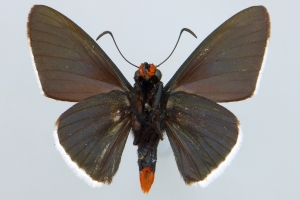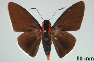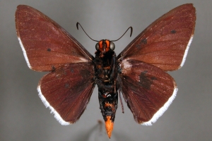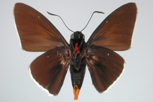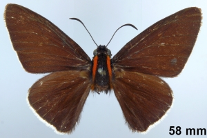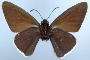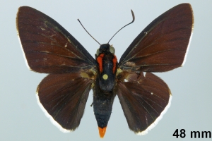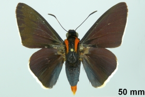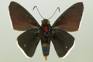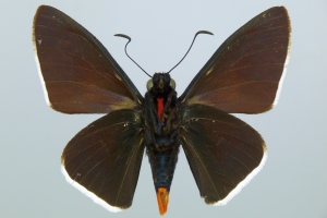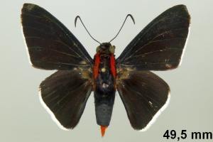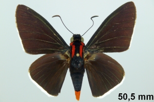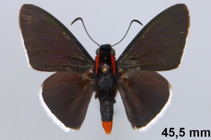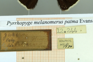 10-12: Holotypus ♂ von Pyrrhopyge tarapotoensis Bell, 1931, Daten siehe Etiketten (fot.: Bernard Hermier, Fotos bearbeitet: Michel Kettner), coll. American Museum of Natural History. New York City.