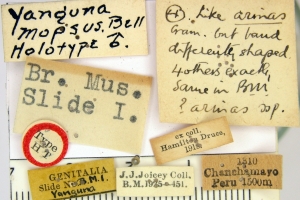 Bell (1931: 233) beschrieb die Art nach einem einzigen Falter: “Holotype male, Chanchamayo, Peru, 1500 m. (ex Coll. Hamilton Druce ; J. J. Joicey Coll. ; British Museum, 1925—451), in collection of the British Museum.”