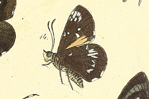 - Erstbeschreibung: Felder & Felder & A. F. Rogenhofer (1864-1867): Reise der österreichischen Fregatte Novara um die Erde in den Jahren 1857, 1858, 1859 unter den Befehlen des Commodore B. von Wüllerstorf-Urbair. Zoologischer Theil. Zweiter Band. Zweite Abtheilung: Lepidoptera. Atlas: 1-10 (Inhalts-Verzeichniss pl. I-LXXIV), 1-10 (Erklärung der Tafeln LXXV-CVII), 1-20 (Inhalts-Verzeichniss Tafeln CVIII-CXL), pl. I-CXL.