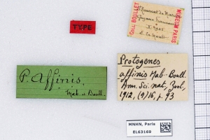 4-6: ♂ als Protogenes affinis bestimmt, der angegebene Fundort ist falsch. Daten siehe Etiketten (fot.: Nick V. Grishin, Fotos bearbeitet: Michel Kettner), coll. Muséum national d'histoire naturelle. Paris.