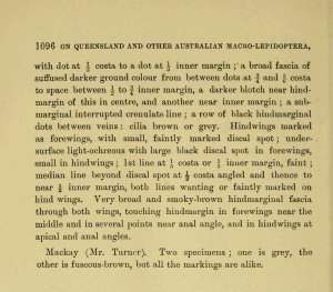 - Original description: Lucas, T. P. (1890): On Queensland and other Australian Macro-Lepidoptera, with localities, and descriptions of new species. — The Proceedings of the Linnean Society of New South Wales. Second series 4 (4): 1065-1099. Sydney (F. Cunninghame & Co.).