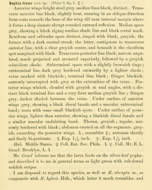 - Schmidt, B.C. & G.G. Anweiler (2014): Taxonomy and biogeography of the Nearctic Raphia Hübner (Lepidoptera, Noctuidae, Raphiinae). — 91-113. In: Schmidt, B.C. & J.D. Lafontaine [Eds.] (2014): Contributions to the systematics of New World macromoths V. — ZooKeys, 421: 192 pp. doi: 10.3897/zookeys.421.7517. [zum PDF-Download auf ZooKeys.net]