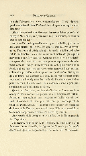 - Beschreibung als Rebelia surientella: Bruand d'Uzelle, Th. (1858): Observations sur divers lépidoptères, descriptions d'espèces nouvelles propres a la faune française. § 1. Remarques sur plusierus psychides, pouvant servir de supplément a la monographie publiée dans les mémoires de la Société libre d'émulation du Doubs, année. Session extraordinaire de 1858. (Séance du 14 Avril). — Annales de la Société entomologique de France, Troisième Série 6: 459-469, pl. 11 I. Paris.