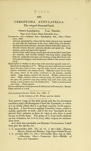 - Richardson, N.M. (1891): Life-history of Plutella annulatella Curt. — The Entomologist's Monthly Magazine, 27: 317-319. [zum Digitalisat auf biodiversitylibrary.org]