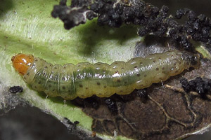 Die Raupe lebt an Preiselbeeren, ob die mit dieser zusammen wachsenden anderen Vaccinium-Arten mitgenutzt werden können, scheint nicht ganz klar zu sein.